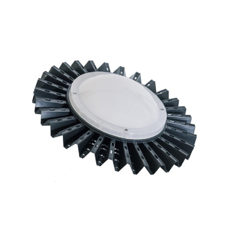 Светодиодные светильники UFO предназначены для внутреннего освещения торговых, административных, общественных и производственных помещений, помещений цехов, складских площадей и прочих с высоким потолком. Применение этих светильников позволяет сократить расходы на электроэнергию. Светильник имеет черный корпус из литого алюминия. Крепление на трос