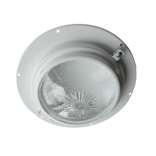 Светильник потолочный предназначен для внутреннего освещения вагонов тепловозов и электровозов.С отражателем и бесцветным рифленым стеклом.